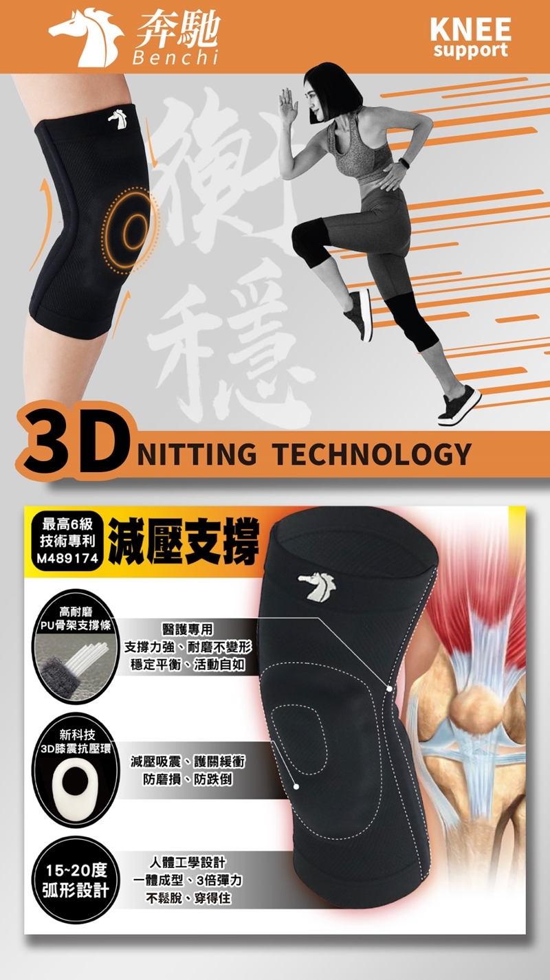 PU骨架支撐條+3D膝震抗壓環